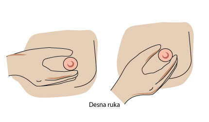 - Glađenje – jednom rukom pridržavajte dojku, a drugom gladite dojku od vrha do bradavice laganim dodirom.